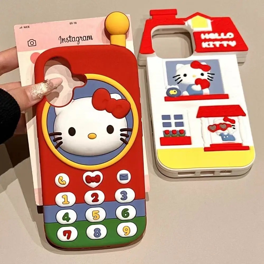 Kawaii Japan Ins Hello Kitty Phone Case For iPhone 3D Cartoon Soft Silicone Back Cover